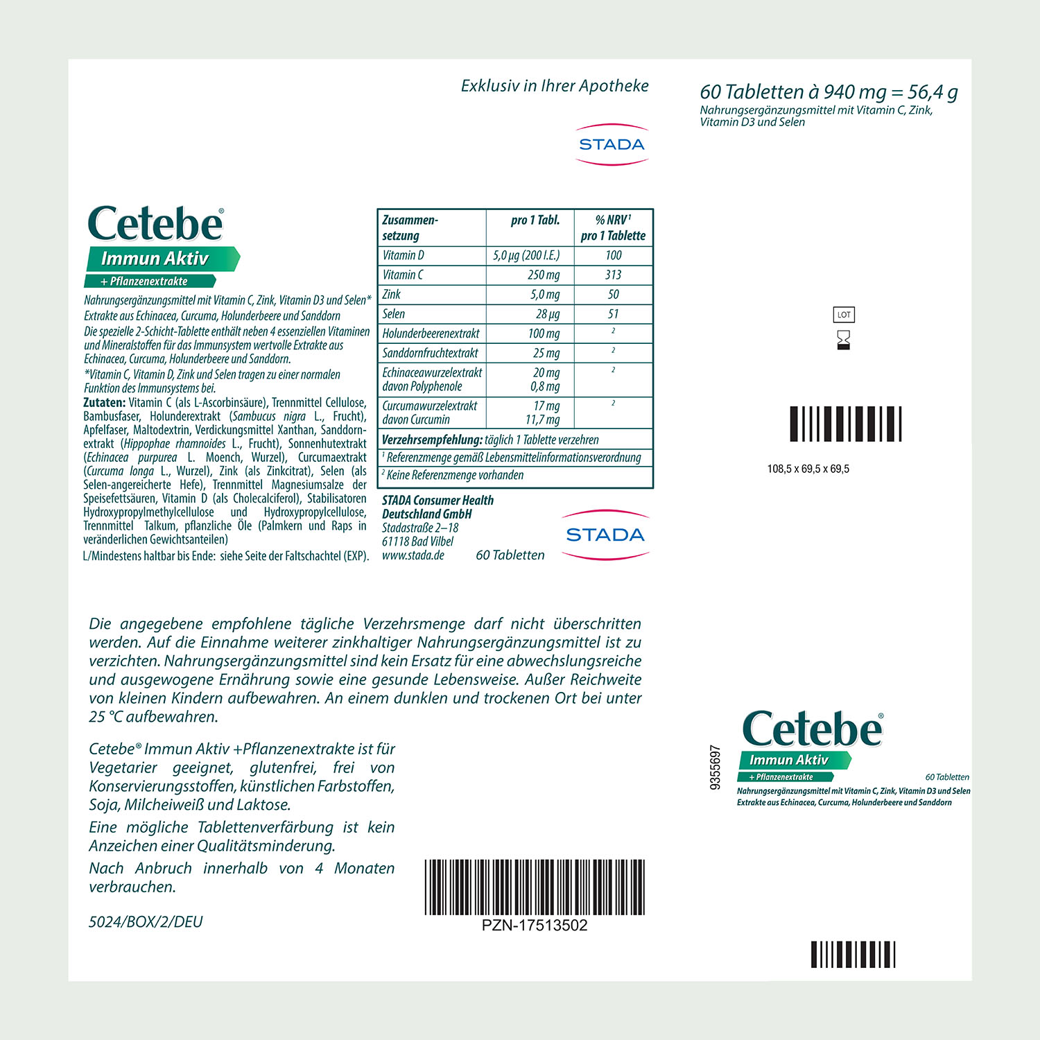 Nach Anbruch der Packung ist Cetebe® Immun Aktiv innerhalb von 4 Monaten zu verbrauchen. An einem dunklen und trockenen Ort bei unter 25 °C aufbewahren.