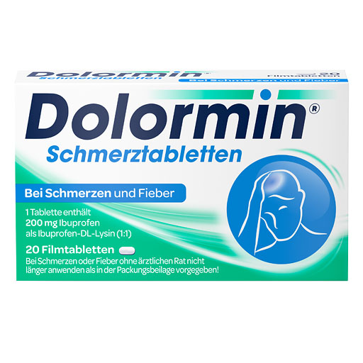 Dolormin® Schmerztabletten enthalten 200 mg des Wirkstoffes Ibuprofen. Ibuprofen gehört zur Gruppe der nicht-steroidalen Antirheumatika und kann zur Linderung von Schmerzen, Fieber sowie Entzündungen beitragen. In Verbindung mit dem körpereigenen Baustein Lysin ist Ibuprofen besser im Magen löslich und kann so schnell vom Körper aufgenommen werden, sodass Schmerzen in kurzer Zeit gelindert werden.