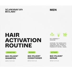 Das Hair Growth Routine Set für Männer von Scandinavian Biolabs bietet eine effektive, medikamentenfreie Lösung zur Stärkung dünner werdender Haare. Es enthält Shampoo, Conditioner und das klinisch getestete Bio-Pilixin® Serum – entwickelt für die tägliche Anwendung.