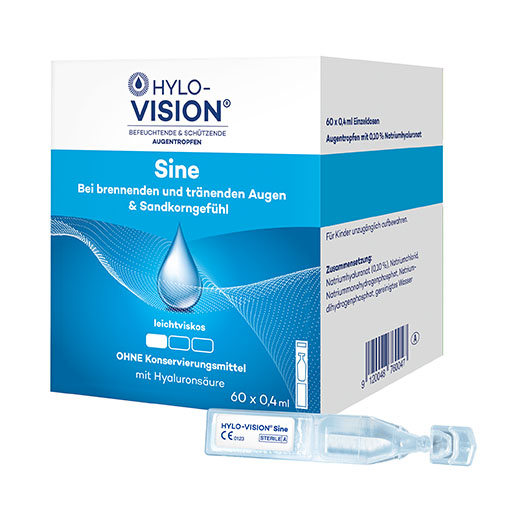Schwangere und stillende Frauen sowie Kleinkinder sollten vor der Anwendung von HYLO-VISION® Sine ihren Augenarzt befragen.