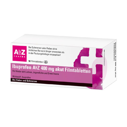 Wenn wir im Alltag von Kopf-, Zahn- oder Regelschmerzen geplagt werden, kann uns das aus der Bahn werfen. Egal in welchem Alter belastet es uns und wir wünschen uns nur noch eins: schnelle Hilfe gegen akute Schmerzen. Auch in der Erkältungszeit werden Schnupfen und Husten häufig von Fieber, Kopf- und Gliederschmerzen begleitet. Dann kann Ibuprofen AbZ 400 mg akut mit dem Wirkstoff Ibuprofen helfen. Ibuprofen gehört zu den Schmerzmitteln, die nicht nur schmerzlindernd und fiebersenkend, sondern auch entzündungshemmend wirken. Wenn Schmerzen also durch Entzündungen ausgelöst werden, bekämpft der Wirkstoff auch die Entzündung als Ursache der Schmerzen. Mit Ibuprofen AbZ 400 mg akut von AbZ-Pharma in der bewährten Wirkstärke von 400 mg Ibuprofen können sie Schmerzen, Fieber und Entzündungen lindern.