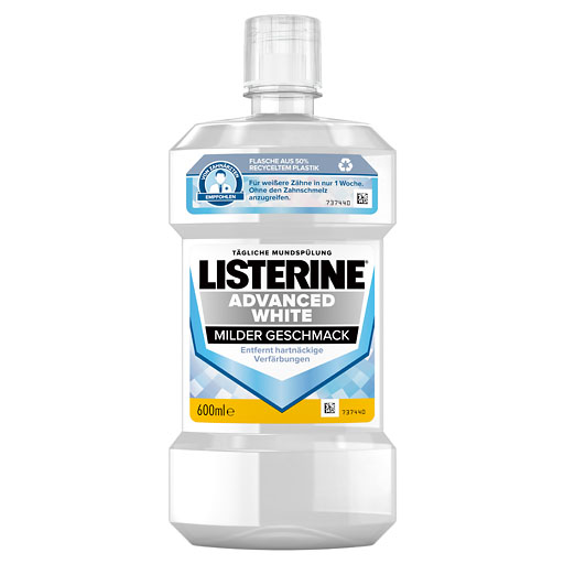 Zweimal am Tag angewendet, löst LISTERINE® Advanced White milder Geschmack nachweislich Zahnverfärbungen und beugt neuen vor – für weißere Zähne in nur 1 Woche.