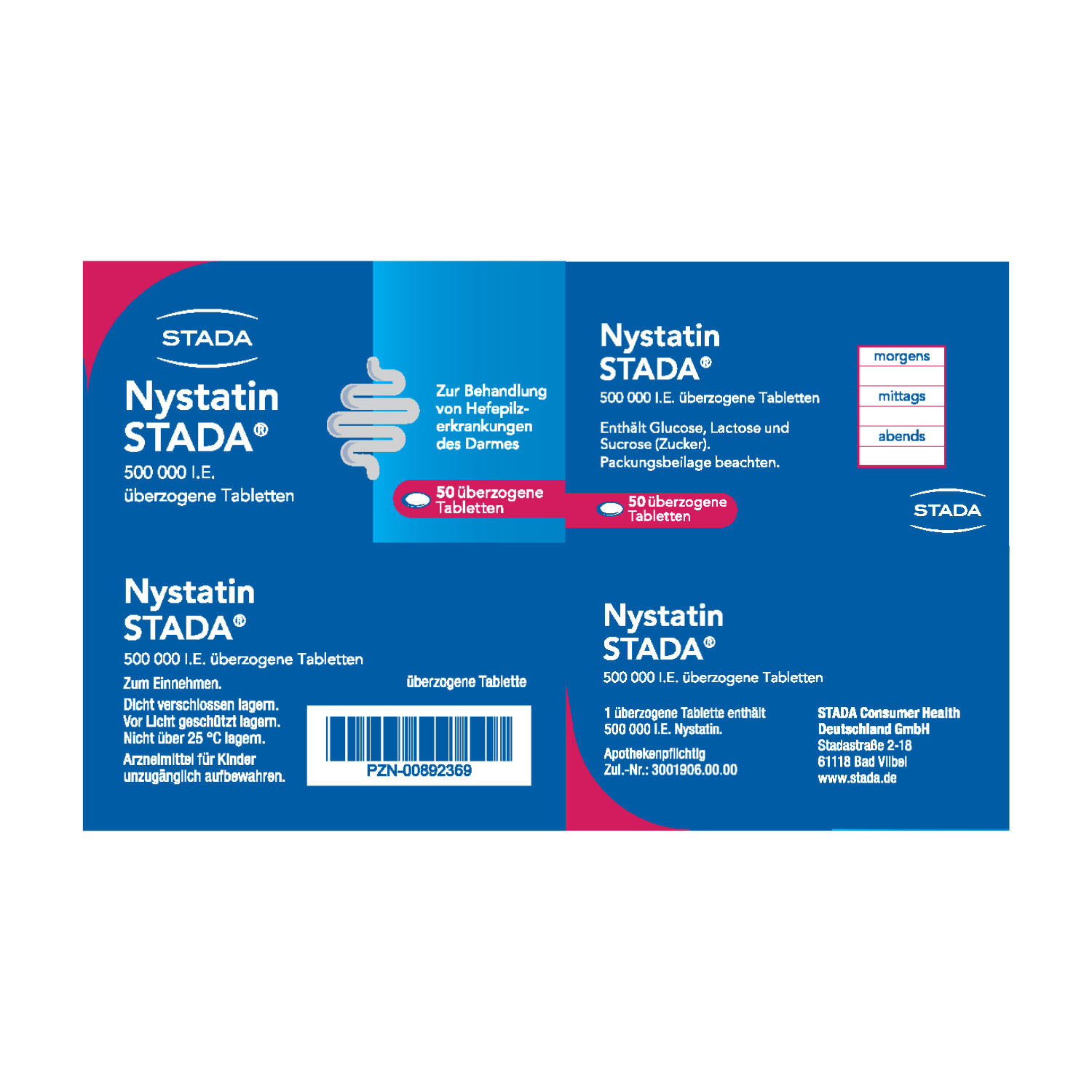 Der Wirkstoff von Nystatin STADA® ist Nystatin. Eine überzogene Tablette enthält 500.000 I. E. (Internationale Einheiten) des Wirkstoffs. Nystatin unterstützt den Körper dabei, Pilze aus der Candida-Gruppe zu bekämpfen, indem der Wirkstoff die Zellwandstruktur zerstört. Das Nystatin bildet Poren und macht die Zellwand somit durchlässig. In der Folge ist der Stoffwechsel der Pilz-Zelle behindert und sie stirbt ab.