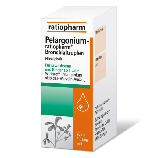 Seit Jahrhunderten ist die Kapland-Pelargonie in Afrika für ihre Wirkung bekannt. Auch in Europa ist der pflanzliche Extrakt, der aus der Wurzel gewonnen wird, in der Medizin beliebt. Pelargonium-ratiopharm® Bronchialtropfen mit dem pflanzlichen Extrakt aus der Pelargoniumwurzel lindern die Symptome einer akuten Bronchitis. Die Bronchialtropfen eignen sich für die ganze Familie. Sie können dreimal täglich mit etwas Wasser eingenommen werden. Bei der Anwendung von Kindern unter 6 Jahren sollte die Einnahme nur nach Absprache mit einem Arzt erfolgen.
