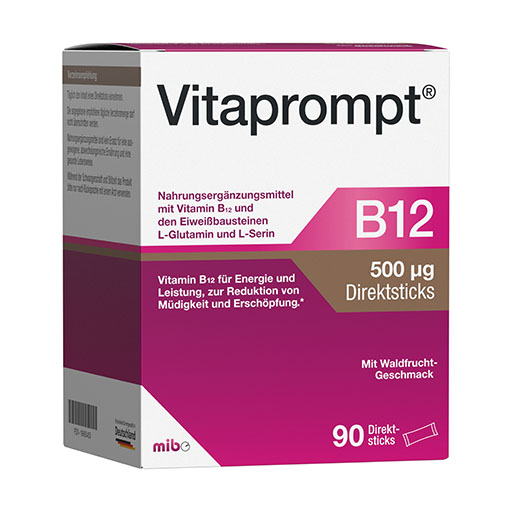 • Zur bestmöglichen Nahrungsergänzung empfehlen wir, Vitaprompt® B12 Direktsticks über einen längeren Zeitraum einzunehmen.
